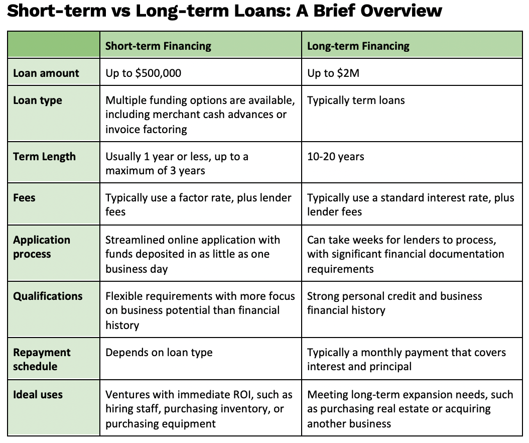 The type of funding that’s right for you, whether short-term or long-term funding, depends on multiple factors, such as how quickly you need the money, how much funding you require, what you plan to use your funding for, as well as details important to the lenders, such as your financial history and the financial health of your medical practice.